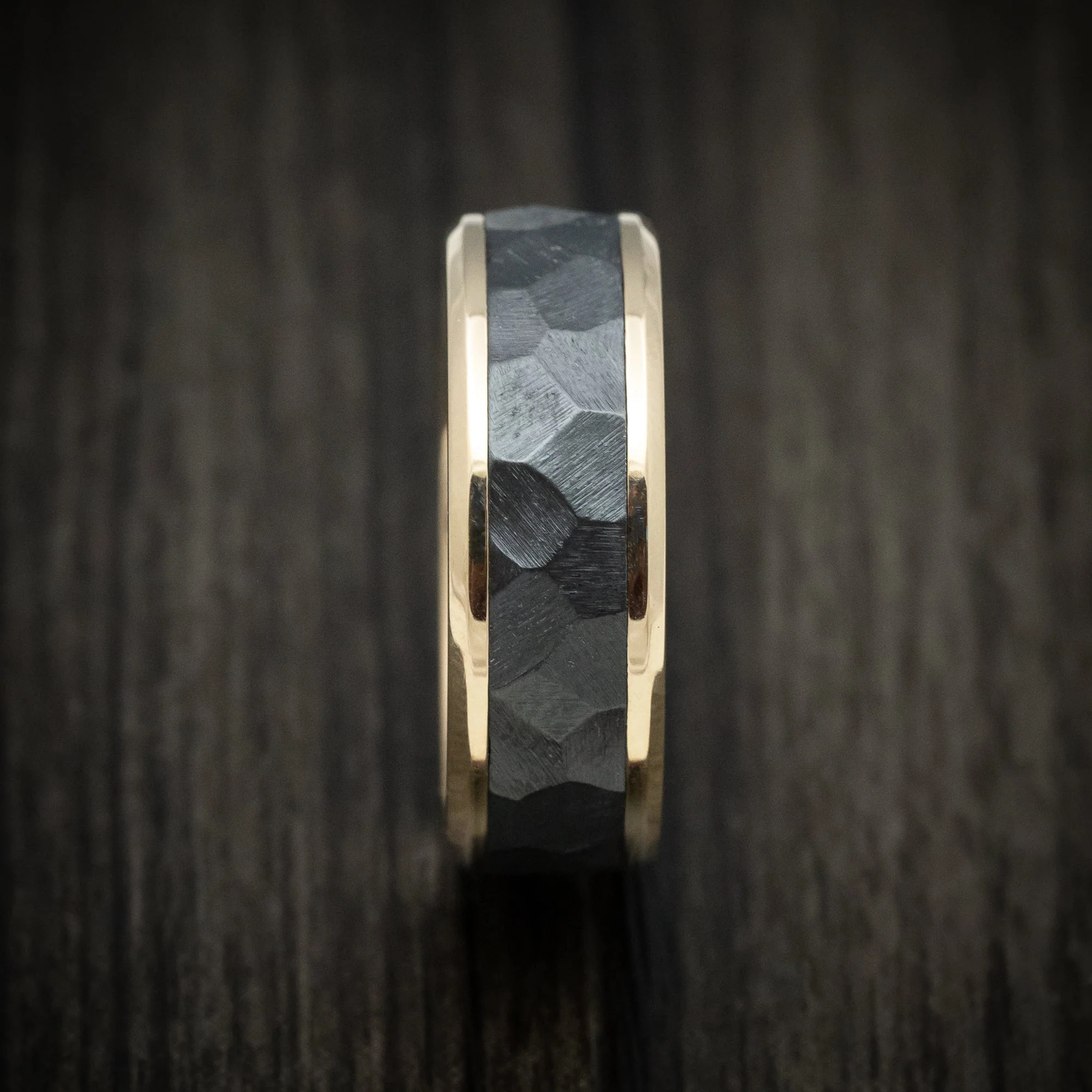 Gold Men's Ring with Black Titanium Rock Finish Inlay Custom Made