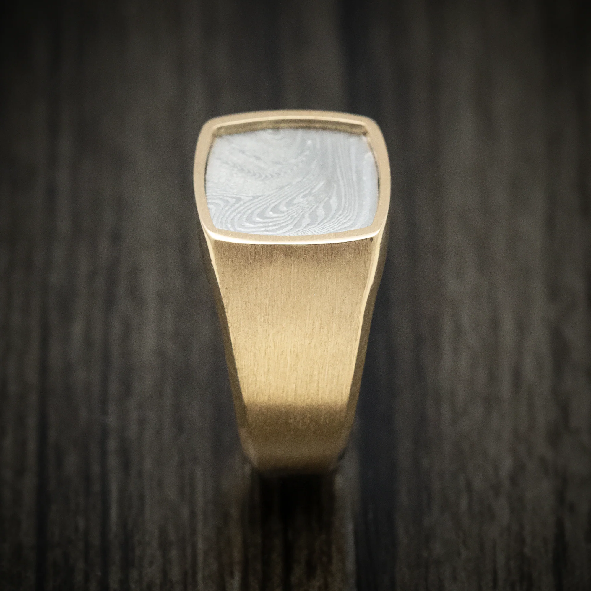 HomeStore14K Gold and Tightweave Kuro Damascus Steel Signet Men's Ring Custom Made Band