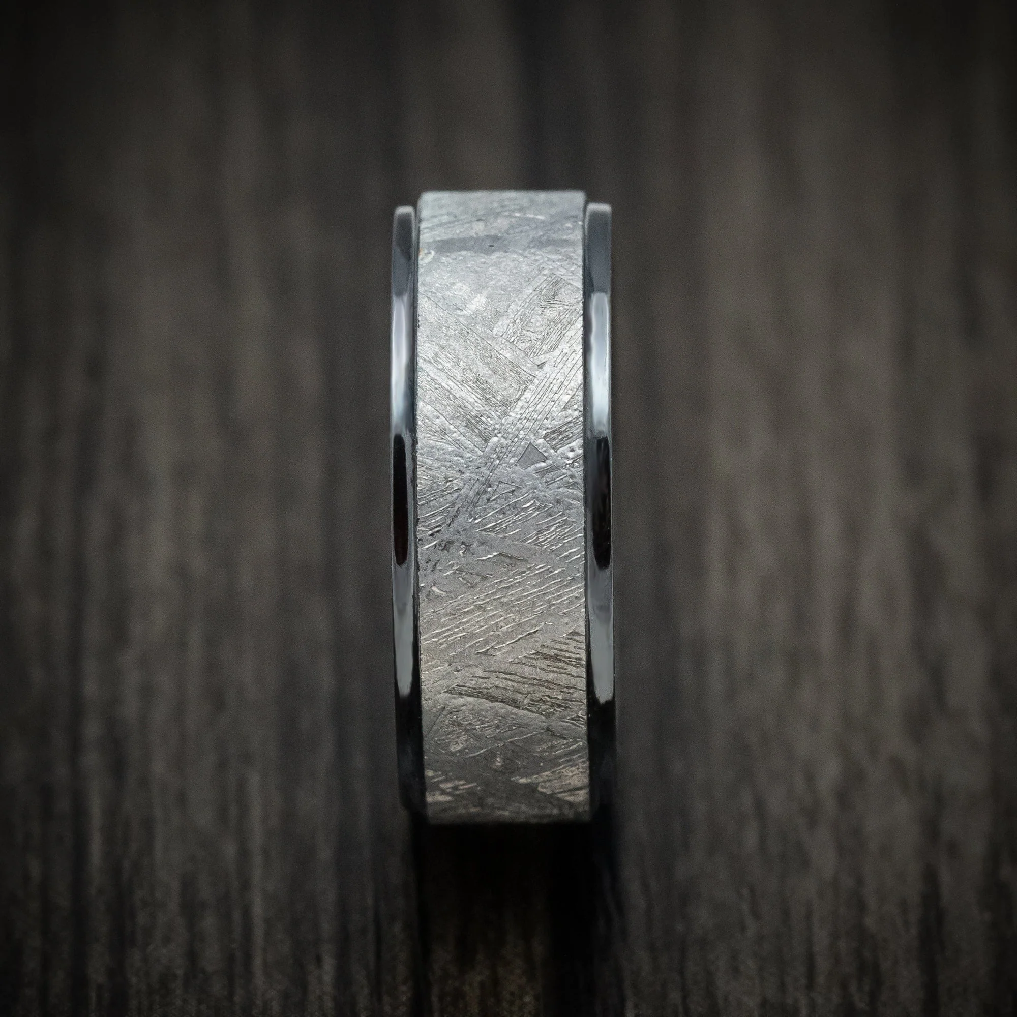 Black Titanium or Black Zirconium Custom Men's Ring with Gibeon Meteorite Inlay and Abalone Sleeve—