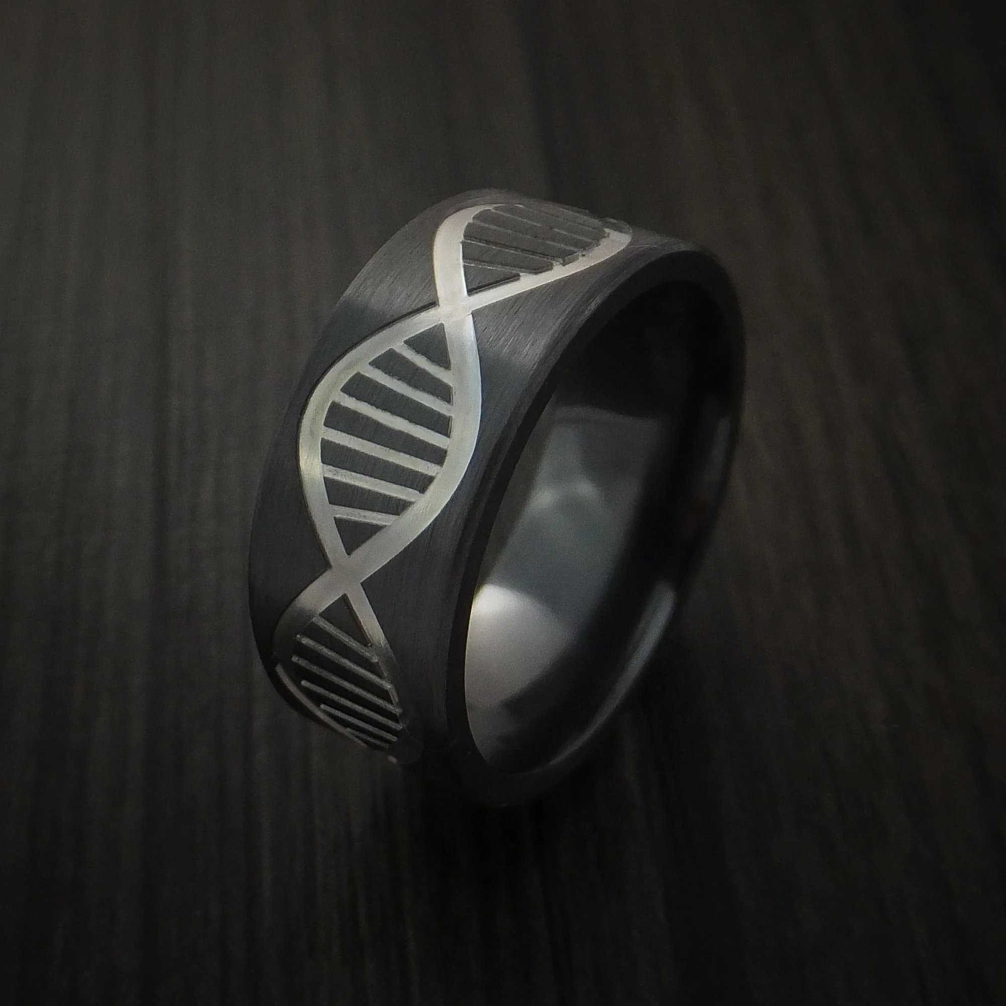 Black Zirconium Wide DNA Strand Men's Ring Custom Made Band
