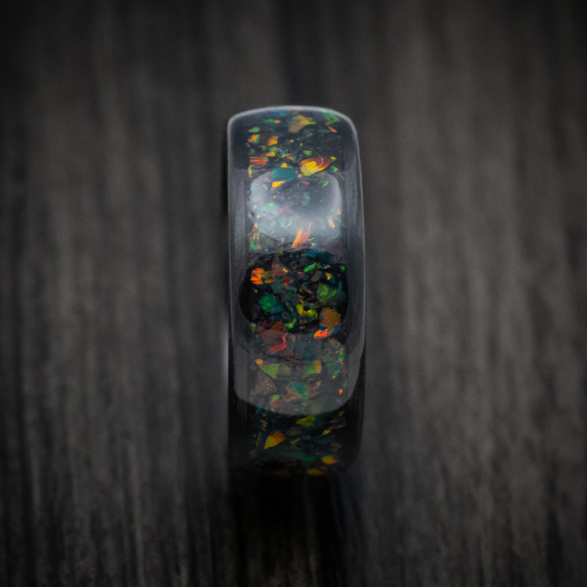 Carbon Fiber and Opal Men's Ring with Glow Custom Made Band
