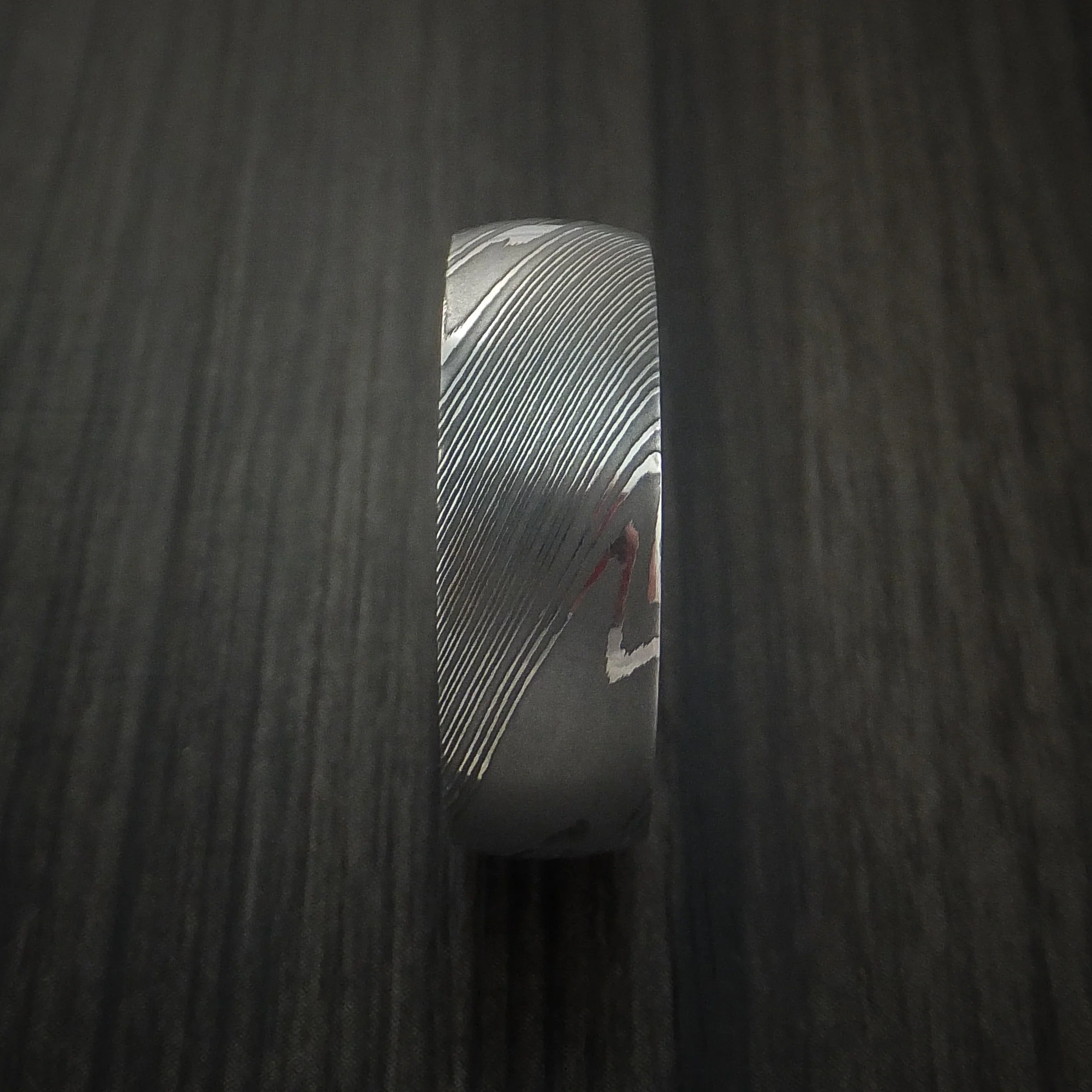 Damascus Steel Men's Ring with Anodized Titanium Interior Sleeve Custom Made