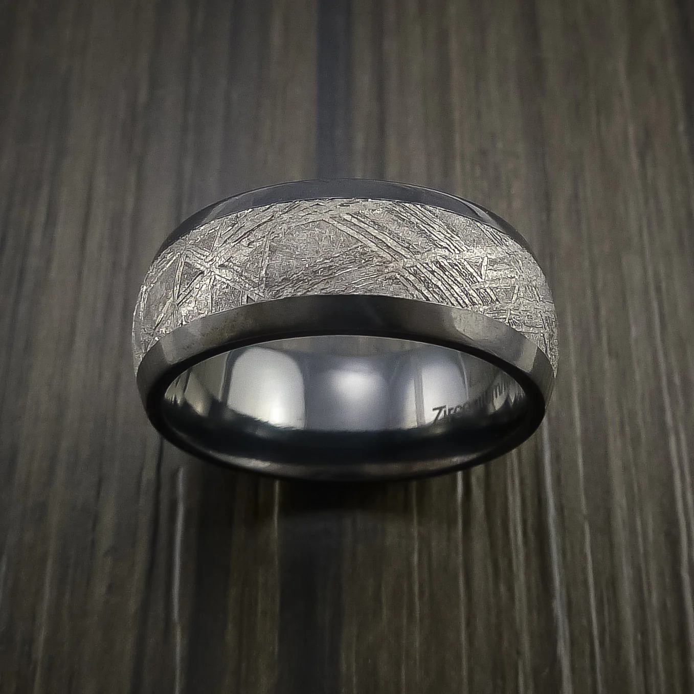 Black Zirconium Men's Ring with Gibeon Meteorite Inlay Custom Made Wedding Band