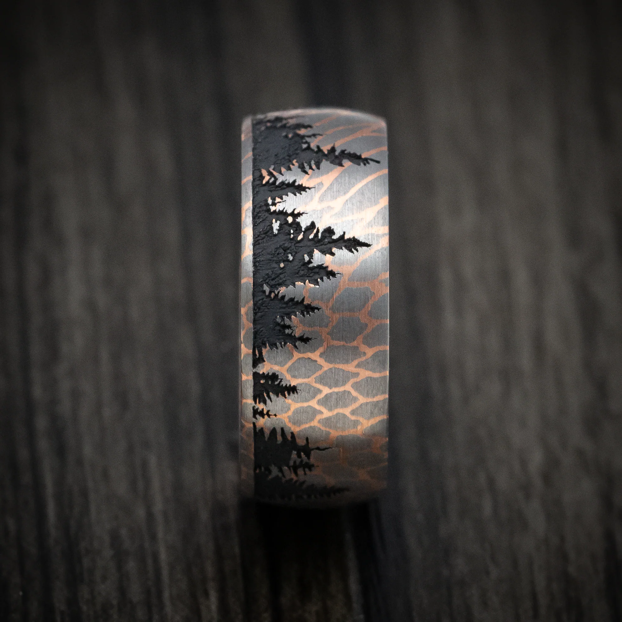 Superconductor Men's Ring with Spruce Pine Tree Design Custom Made Band