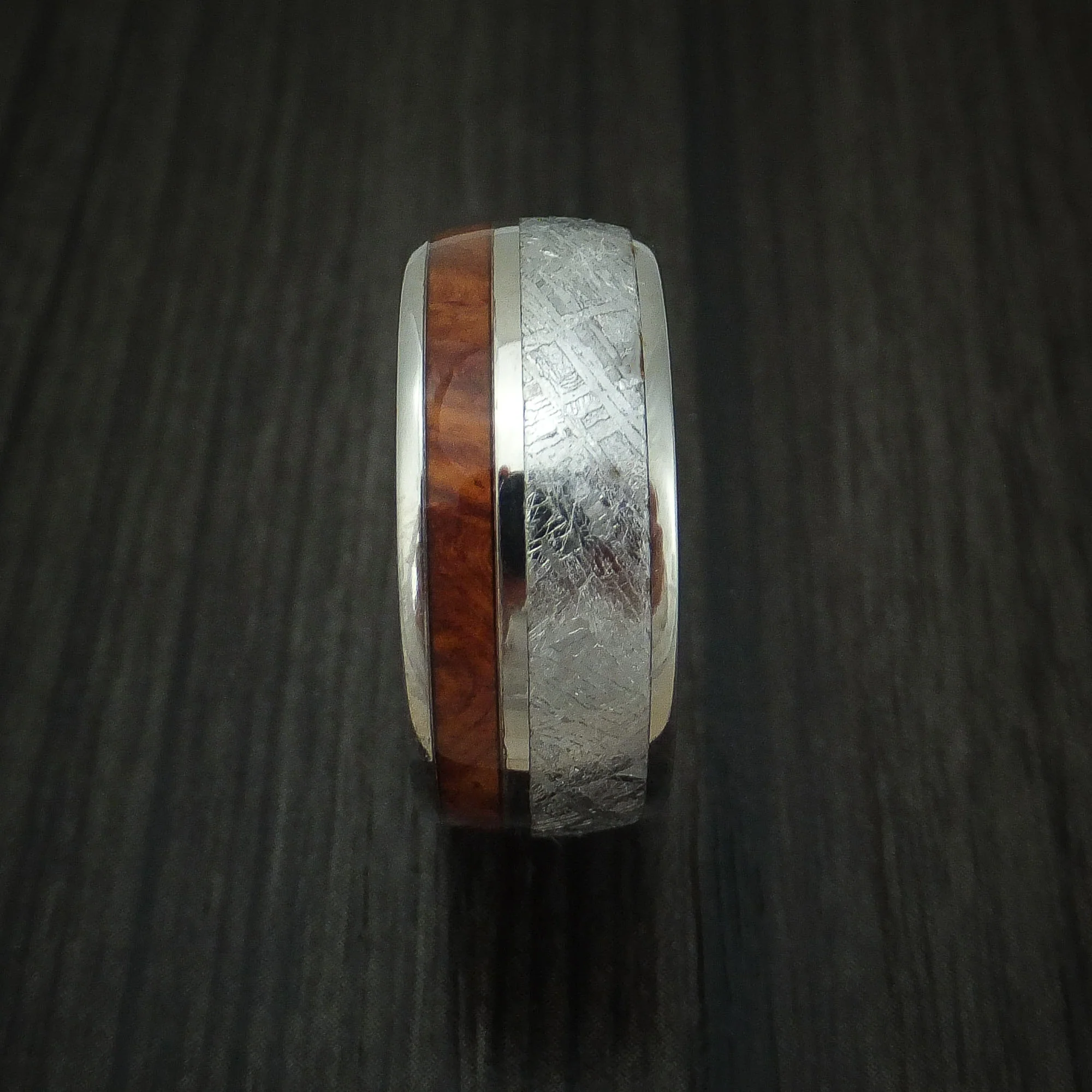 Titanium Men's Ring with Meteorite and Desert Ironwood Burl Wood Custom Made Band
