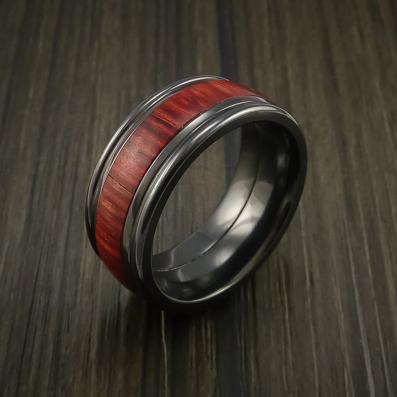 -70%Black Zirconium ring with Wood Inlay Custom Made Wedding Men's Band—