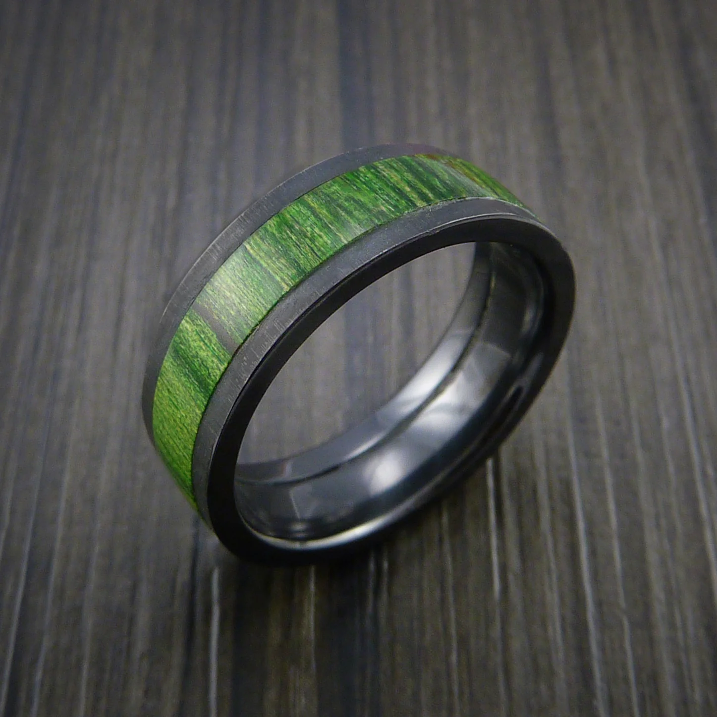 Black Zirconium Men's Ring with Wood Inlay Custom Made Wedding Band—